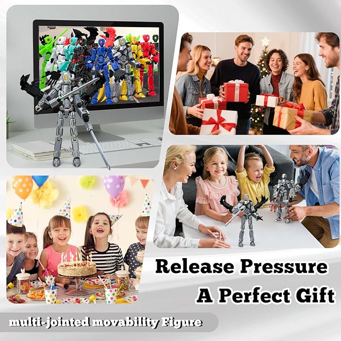 8Inch T13 Action Figure Assembly Completed, T13 Multi-Jointed Movable Robot Action Figure Set,Collectors Desktop Decorations for Game Lovers Toys (Silvery)