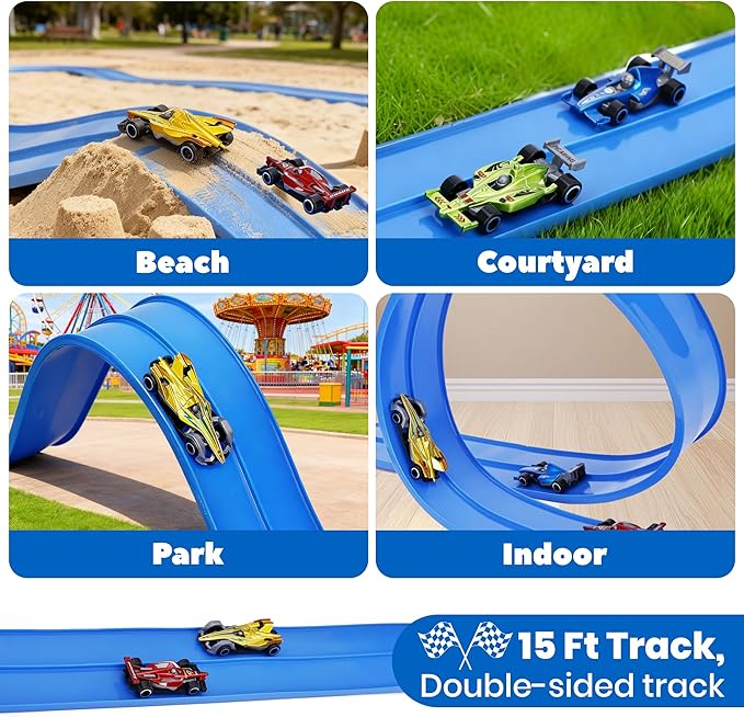 About This 🏁【Flexible & Fun 15 Ft Track】Create endless racing adventures with our 15ft bendable race track that twists, loops,... Read more