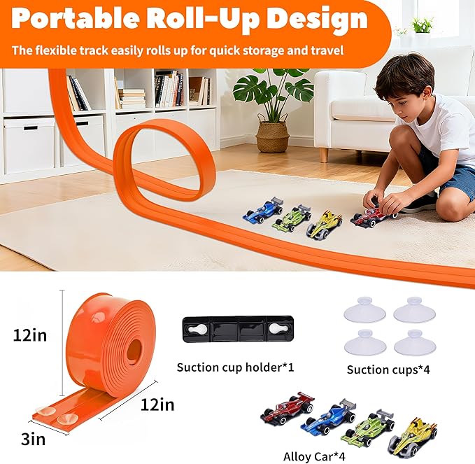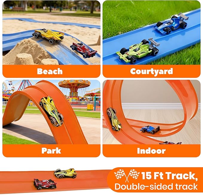About This 🏁【Flexible & Fun 15 Ft Track】Create endless racing adventures with our 15ft bendable race track that twists, loops,... Read more