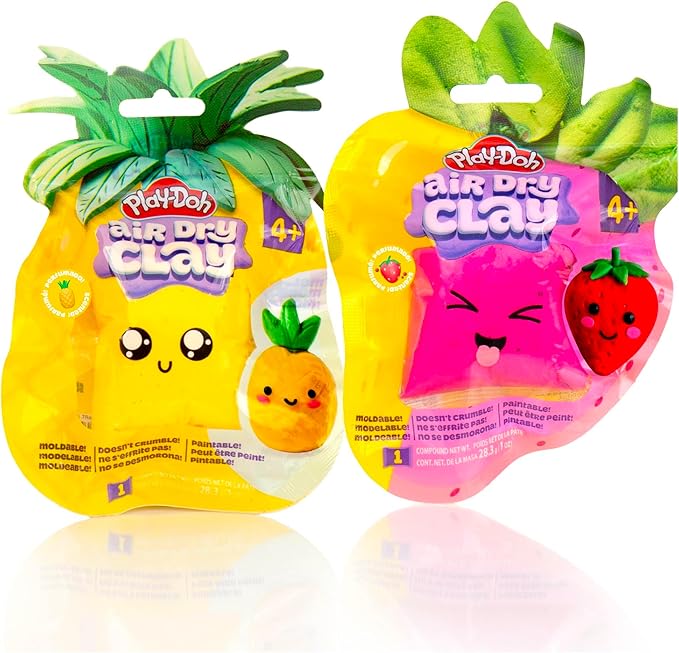 Play-Doh Scented Air Dry Clay, 2-Pack Summer Bundle, 1 Pink Strawberry, 1 Yellow Pineapple, Arts and Crafts, Craft Supplies, Modeling Clay for Kids, Toddler Party Favors, Goodie Bag Stuffers