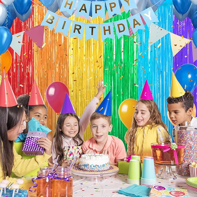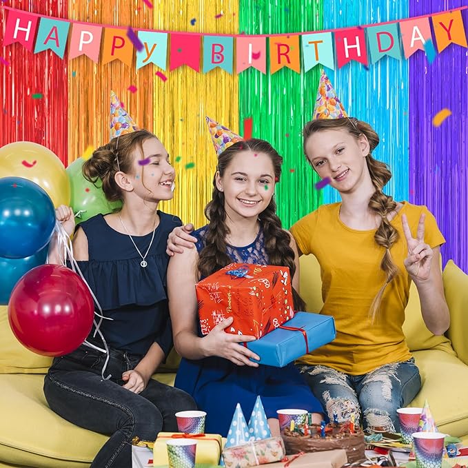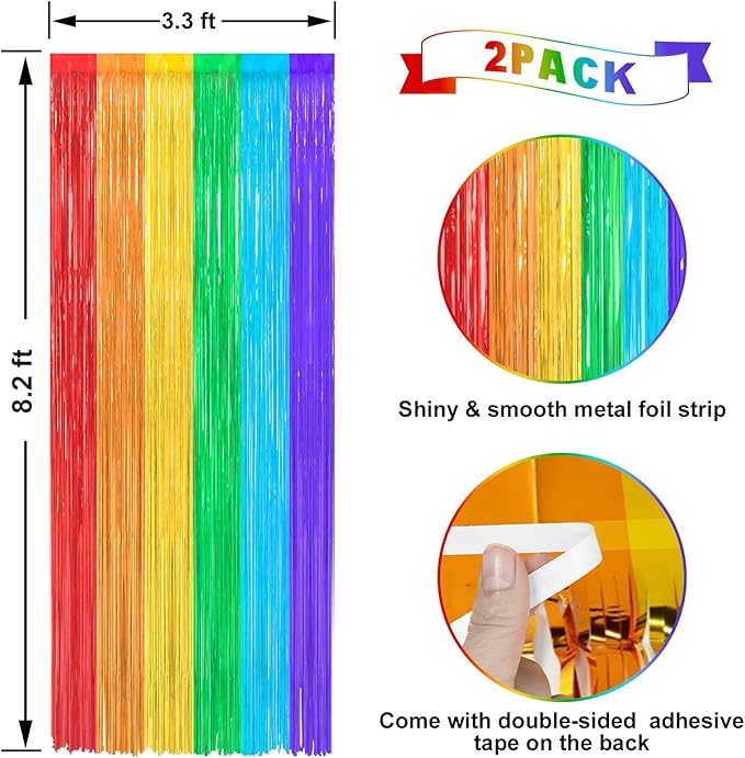 2 Pack Rainbow Foil Fringe Curtains Streamers Party Decorations 3.3 x 8.2 ft, Tinsel Curtain Fringe Backdrop for Parties, Door Fringe Birthday Streamers, Barbie Backdrop Birthday Party Decorations