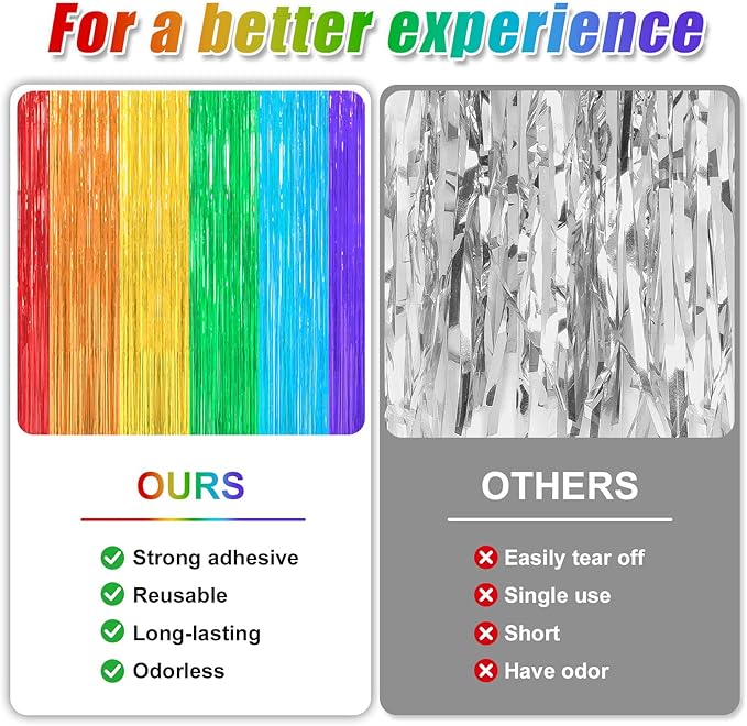 About This Customer Service - 2 packs of foil fringe curtains, the size of each tinsel curtain backdrop is 3.3... Read more
