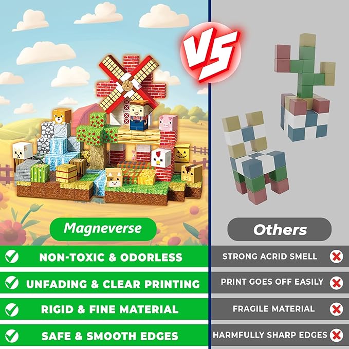 About This 🌾【150 PCS Farm Animal Magnetic Blocks for Countryside Creations】Vibrant, farm-themed magnet blocks inspire kids to build their own... Read more