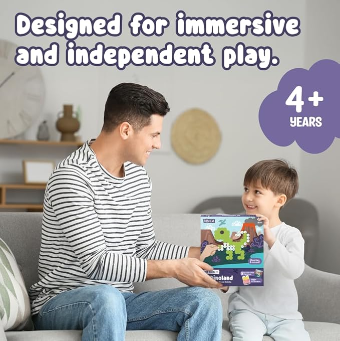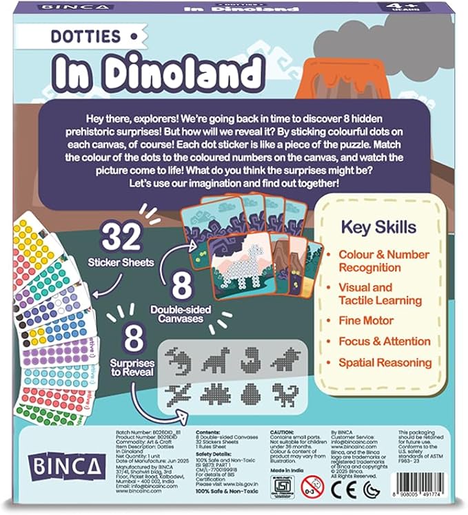 BINCA Dotties Dot Art Activity Kit, 1500+ Stickers, 8 Dinosaurs Mess-Free Activities, DIY Dot Sticker Art for Toddlers, Kids Travel Activities, Craft Kits & Gifts for Girls Ages 4,5,6,7