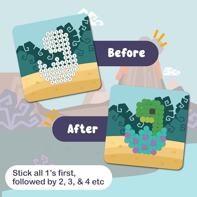About This DOT BY DOT STICKER ART ACTIVITY: Reveal 8 magical prehistoric dinosaur surprises with this engaging sticker art kit... Read more