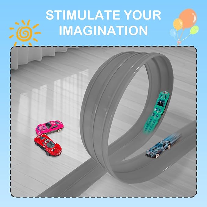 About This Flexible Creativity: 15ft bendable track design lets you twist, turn, and swerve to build your one-of-a-kind race car... Read more