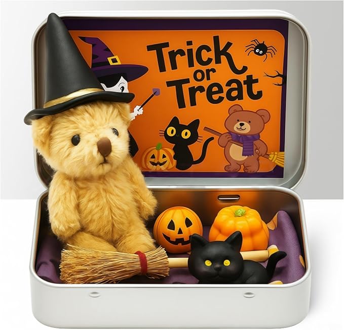 About This WHIMSICAL HALLOWEEN WIZARD BEAR IN A BOX: This pocket-sized enchantment isn’t just a teddy bear—it’s a miniature wizard... Read more
