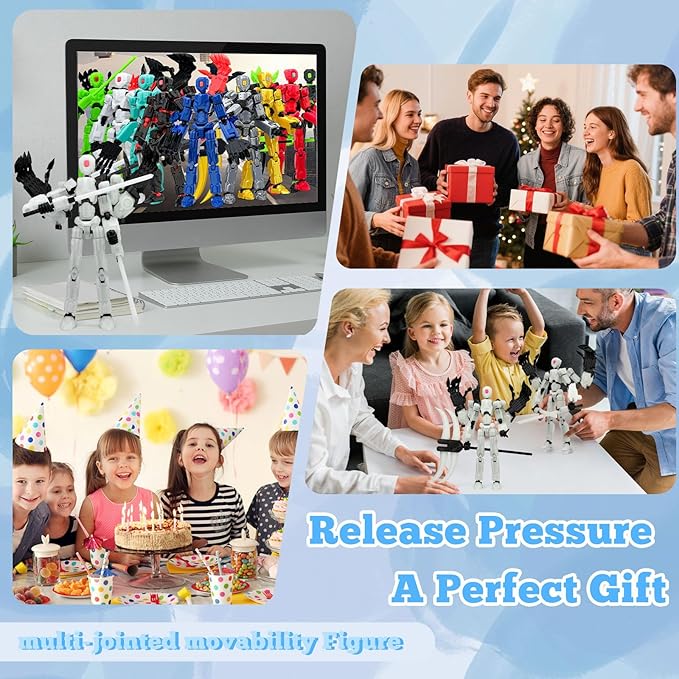T13 Action Figure Assembly Completed, T13 Multi-Jointed Movable Robot Action Figure Set,Collectors Desktop Decorations for Game Lovers Toys (White Luminous Blue, 8IN)
