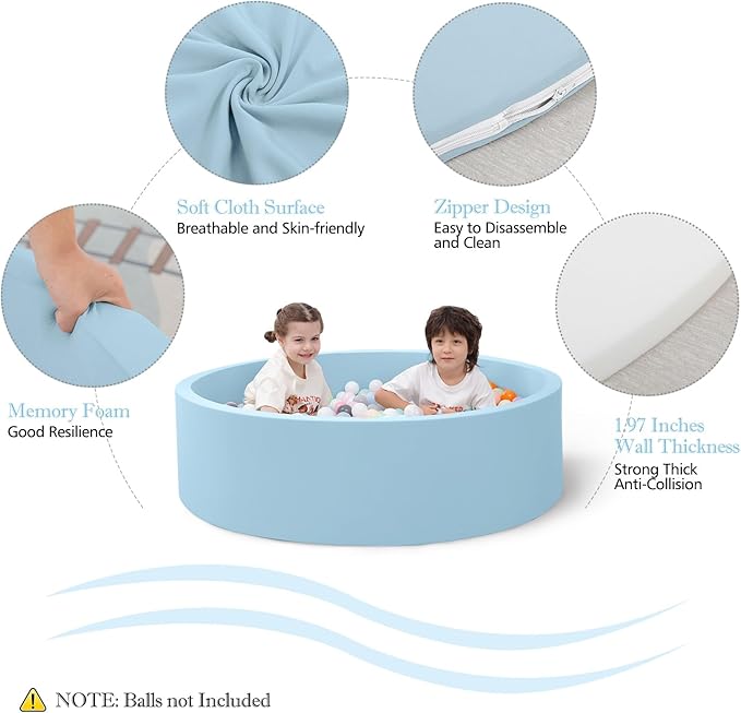 Foam Ball Pit for Toddlers, 35.4"x 11.8" Kids Ball Pit, Soft Round Baby Ball Pool, Ideal Gift for Girls and Boys, Indoor and Outdoor Game(Blue, NO Balls)
