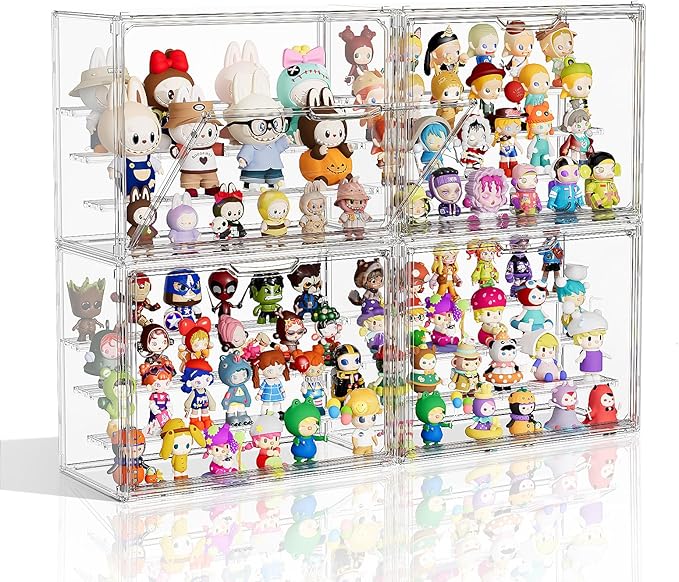 Clear Acrylic Display Case for Collectibles 4 Layer Hobby Figure Display Case Box with Shelves Stackable Figurine Display Shelf for Funko Pop, Pop Mart, Labubu, Model, 4 Pack