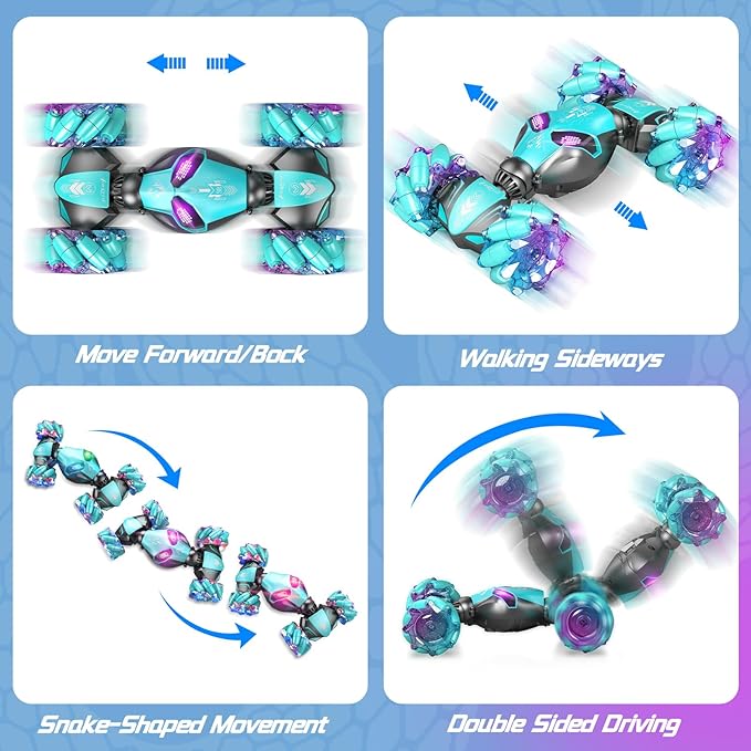 Gesture Sensing Remote Control Car, 2.4GHz 4WD RC Drift Stunt Hand-Controlled Cars for Boys Age 8-12, All-Terrain Off-Road Twist Toys with Lights Music for Christmas Birthday Gifts (Blue)