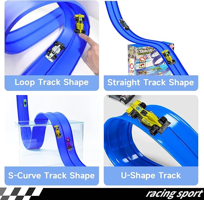 About This 16.5 FT Extra-Long Flexible Track: This bendable race track toy stretches up to 16.5 feet, giving kids more... Read more
