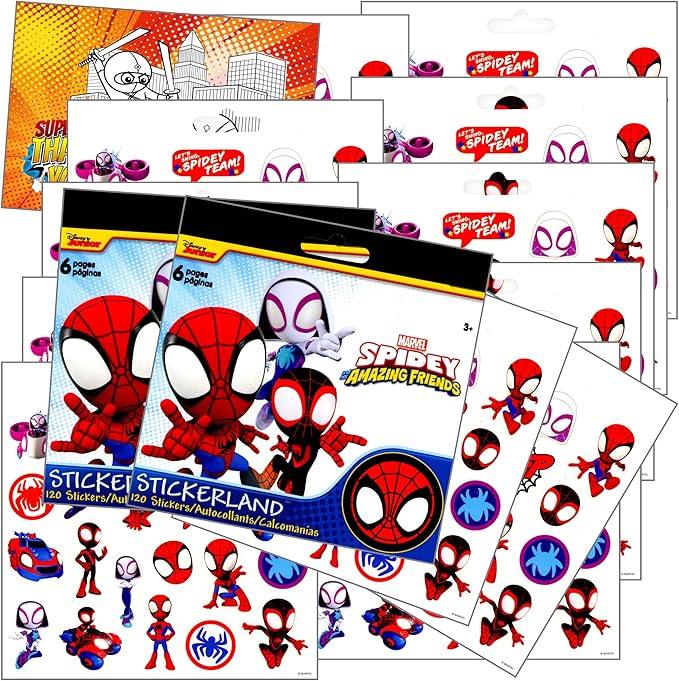 Spidey Stickers Party Favors Set Includes Spidey Party Sticker Sheets, Superhero Postcard Craft