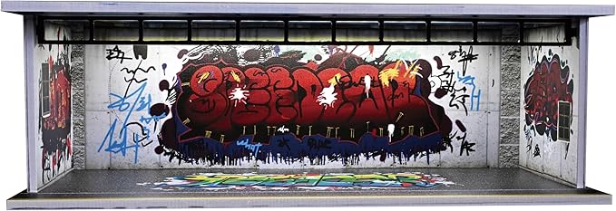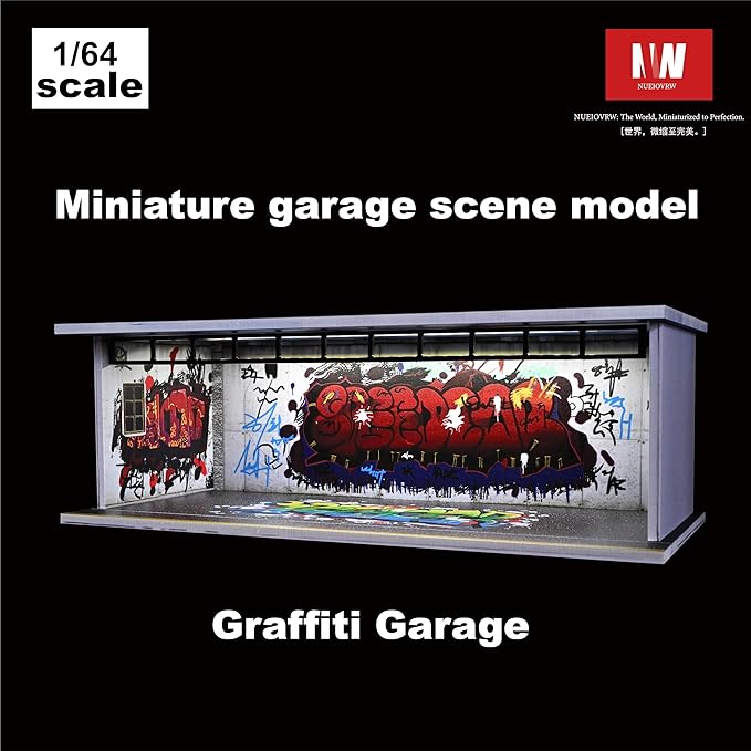 Display Case for Hot Wheels,Diorama 1/64 Scale Car Garage Model with LED Lights and Acrylic Cover, Stackable Car Parking Lot Model,Diecast Car Display Case(Graffiti Garage)