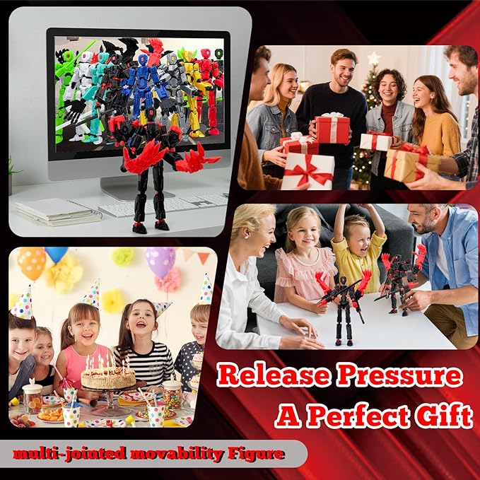 5.5Inch T13 Action Figure Assembly Completed, T13 3D Printed Action Figure Multi-Jointed Movable Robot Set,Collectors Desktop Decorations for Game Lovers Toys (Black Red)