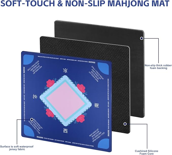 Mahjong Mat, No Creases Mahjong Mat for Table, 31.5x31.5 Inch Anti Slip Noise Reduction Mah jongg Mat, Mahjong Gifts with Carrying Bag, Mahjong Table Mat for Dominoes, Poker, Card, Board Games (Blue)
