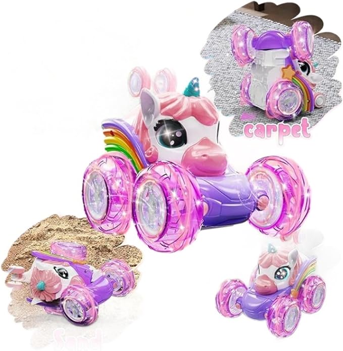 Unicorn Remote Control Car for Girls,Rechargeable 360°Stunt RC Cars Rotation 4WD Remote Cars with LED Lights,Fun Indoor Outdoor Toys for Kids,Chritmas Birthday Gift for 3 4 5 6 Year Old Girl