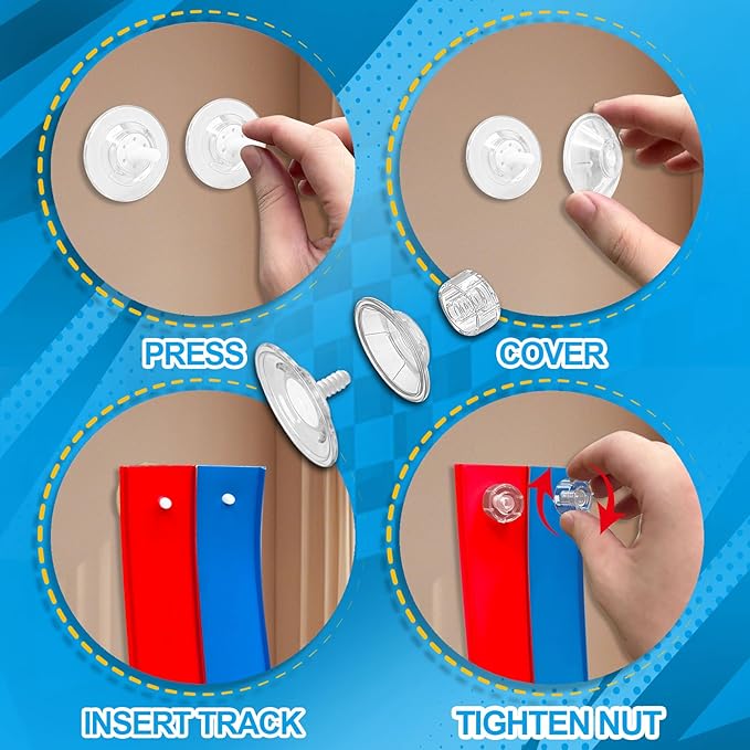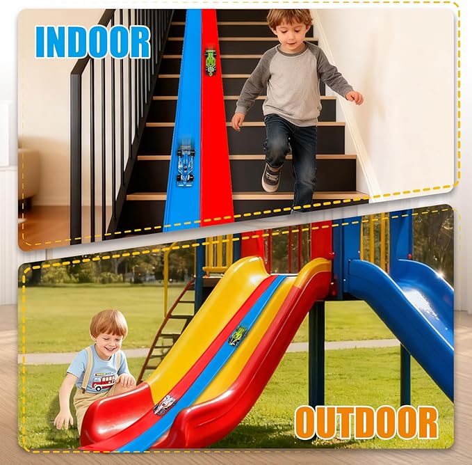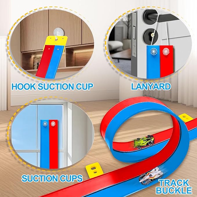 Flexible Race Track Toys for Kids 15 Ft with 4 Cars & Suction Cups, Portable Double Lane Racetrack Compatible with Hot Wheels & 1/64 Diecast Cars, Fun Car Ramp Track Set for Ages 3+(Blue & Red)