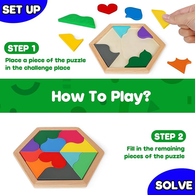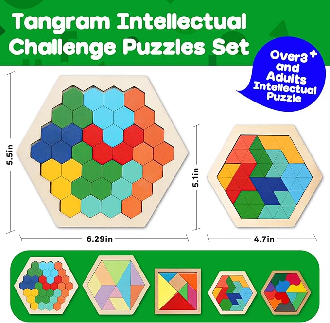 About This Wooden Puzzles Sets:This all-in-one brain teaser puzzles collection includes Russian blocks, hexagon puzzles,Tangram puzzles,crafted for board games and... Read more