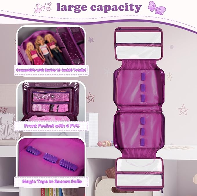 Carrying Case Compatible with Barbie Dolls 12-Inch, Storage Organizer with Handle Holds up to 6 Dolls,Multiple Pockets for Accessories,Toy Storage Box, lavender,Bag Only (purple)
