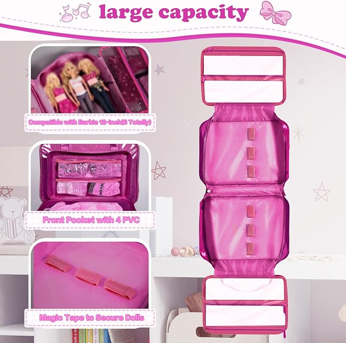 Carrying Case Compatible with Barbie Dolls 12-Inch, Storage Organizer with Handle Holds up to 6 Dolls,Multiple Pockets for Accessories,Toy Storage Box, lavender,Bag Only (magenta)