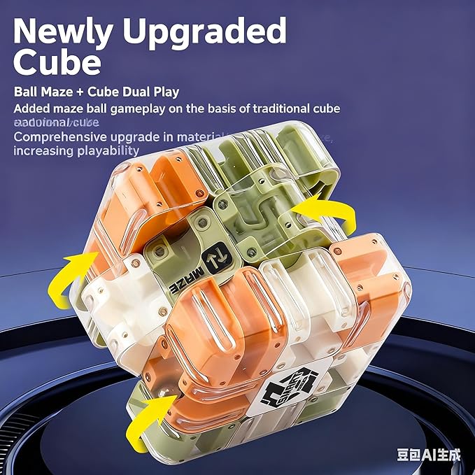 Large 3D Labyrinth Puzzle Maze Cub - an Engaging Brain Teaser Toy, high Difficulty,Suitable for Adults, Children,and Teenagers with Brain teasers,3D Maze Magic Cubes, Brain Training (Yellow)