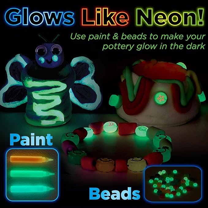 Faber-Castell Neon Glow Pottery Studio: Create Your Own Pottery Designs with USB-Powered Pottery Wheel, Air Dry Clay, Neon & Glow in The Dark Paints, Tools & 50+ Craft Supplies for Kids (Ages 8+)