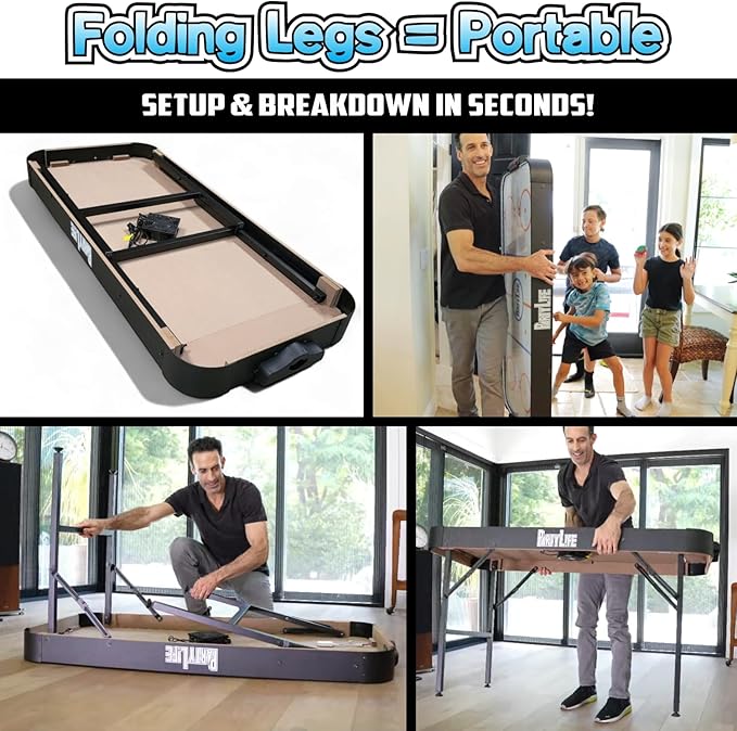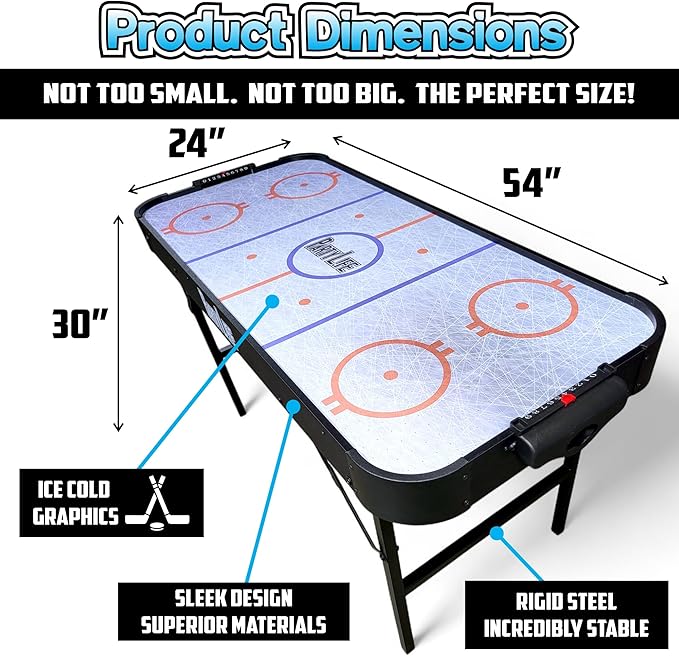 PartyLife 54" Air Hockey Table w/Folding Steel Legs & Optional LED Lights - Powerful Motor, Smooth Surface, Very Sturdy - Perfect for Kids and Adults, Game Rooms & Home Arcade!