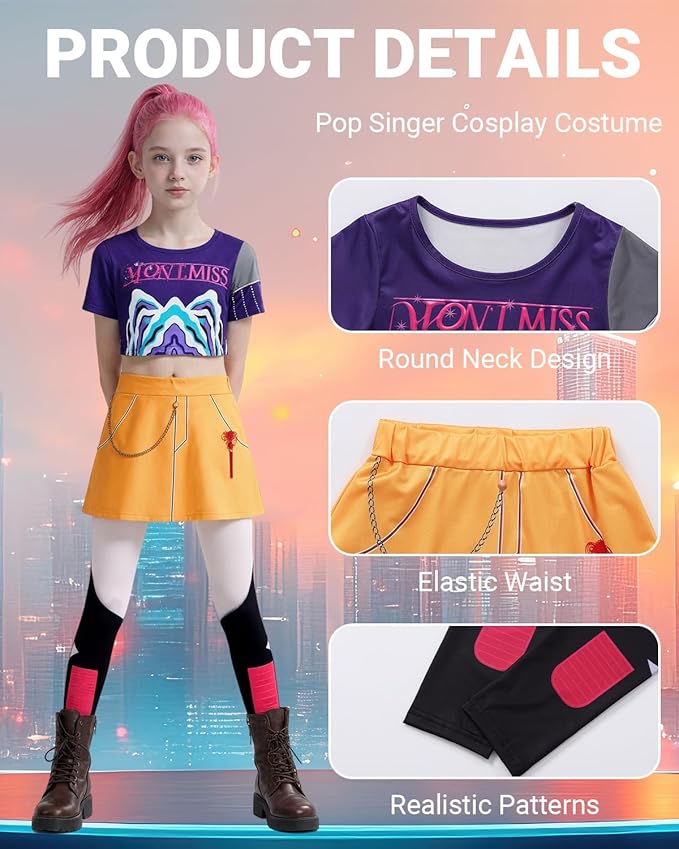 Girls Demon Pop Singer Hunters Costume 3-14 Years Stage Dance Idol Cosplay Outfit, Kids Halloween Costumes