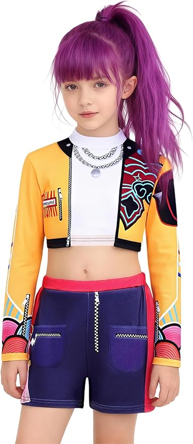Girls Demon Pop Singer Hunters Costume 3-14 Years Stage Dance Idol Cosplay Outfit, Kids Halloween Costumes