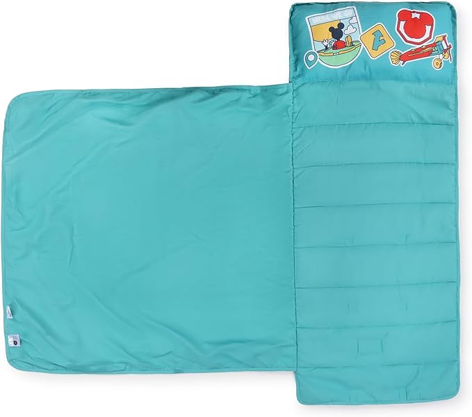 Jay Franco Kids Nap Mat with Embedded Pillow & Blanket – Soft 46"x20" Microfiber Sleeping Bag with Name Tag & Handle