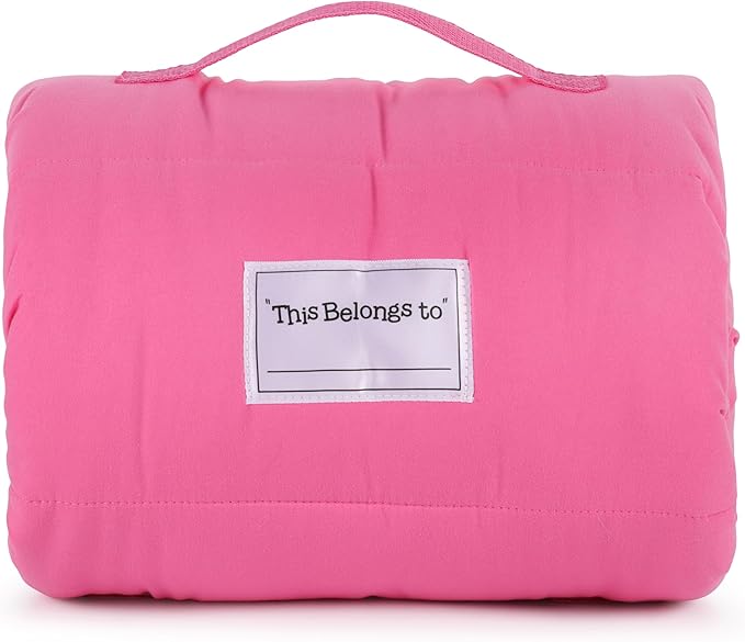 Jay Franco Kids Nap Mat with Embedded Pillow & Blanket – Soft 46"x20" Microfiber Sleeping Bag with Name Tag & Handle
